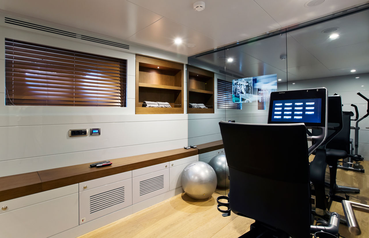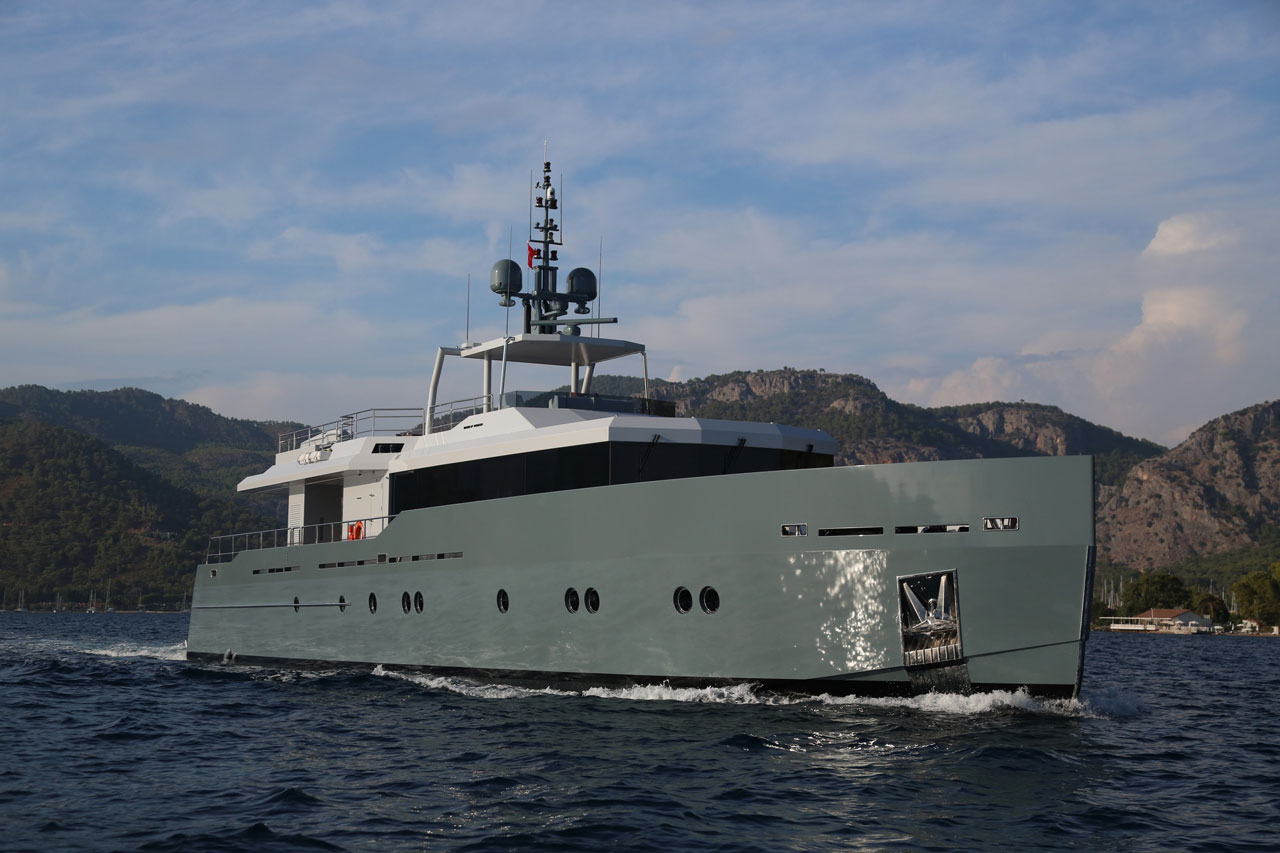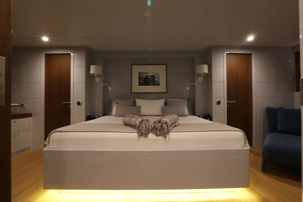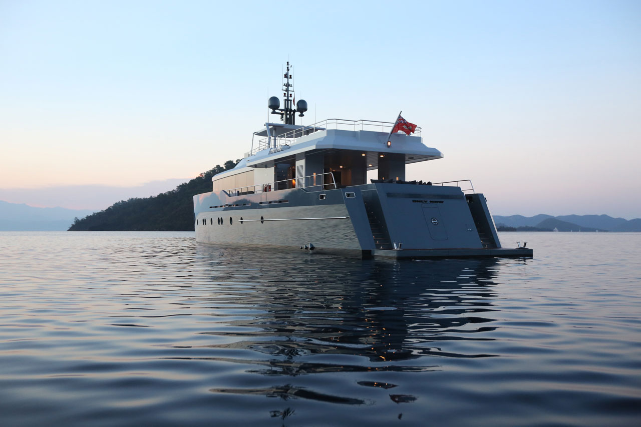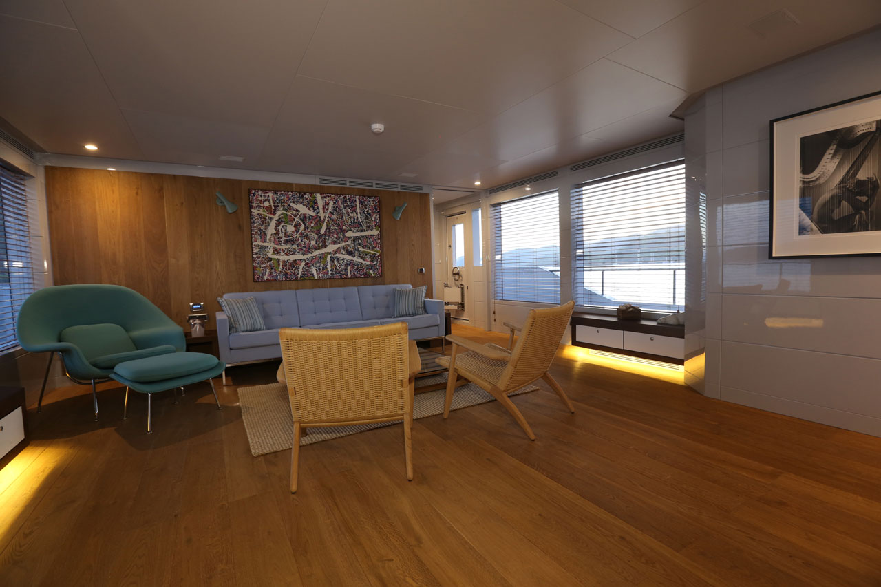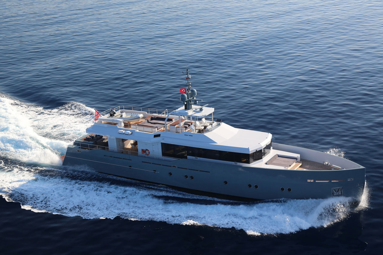 Only Now, a two deck, open planned yacht suitable for island hopping in the Mediterranean. A more angular, sleeker style was aimed, with special lifestyle features throughout the boat, such as the dining area with benches in the upper deck. The main deck space transitions seamlessly from the a la carte dining area to the salon.